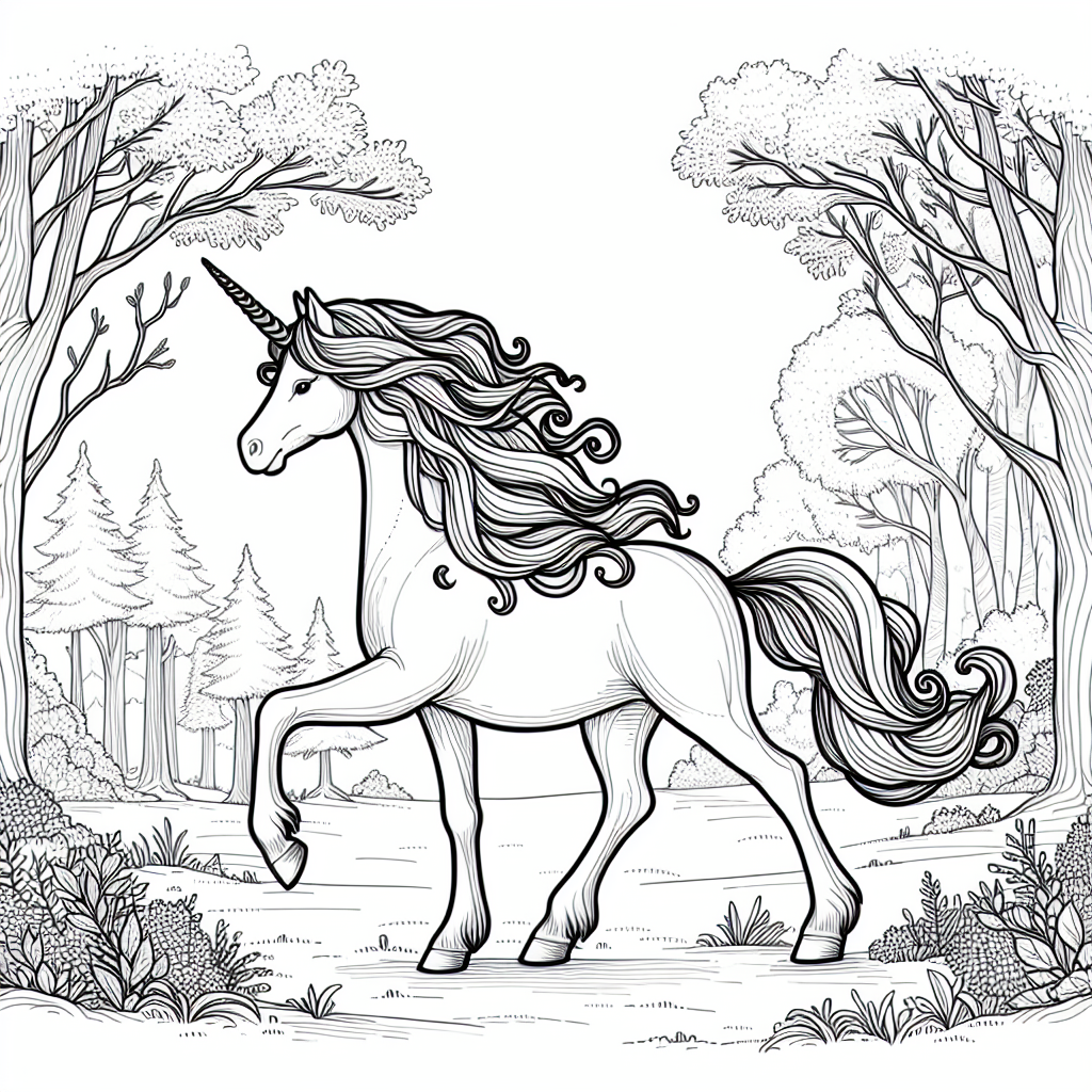 Ein majestätisches Einhorn steht inmitten einer Lichtung im …